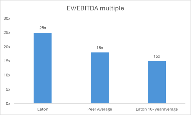 Valuation reflects this: Eaton trades at ~25x forward EV/EBITDA, well above historical and peer averages. It’s not about next quarter-it’s a multi-cycle bet.